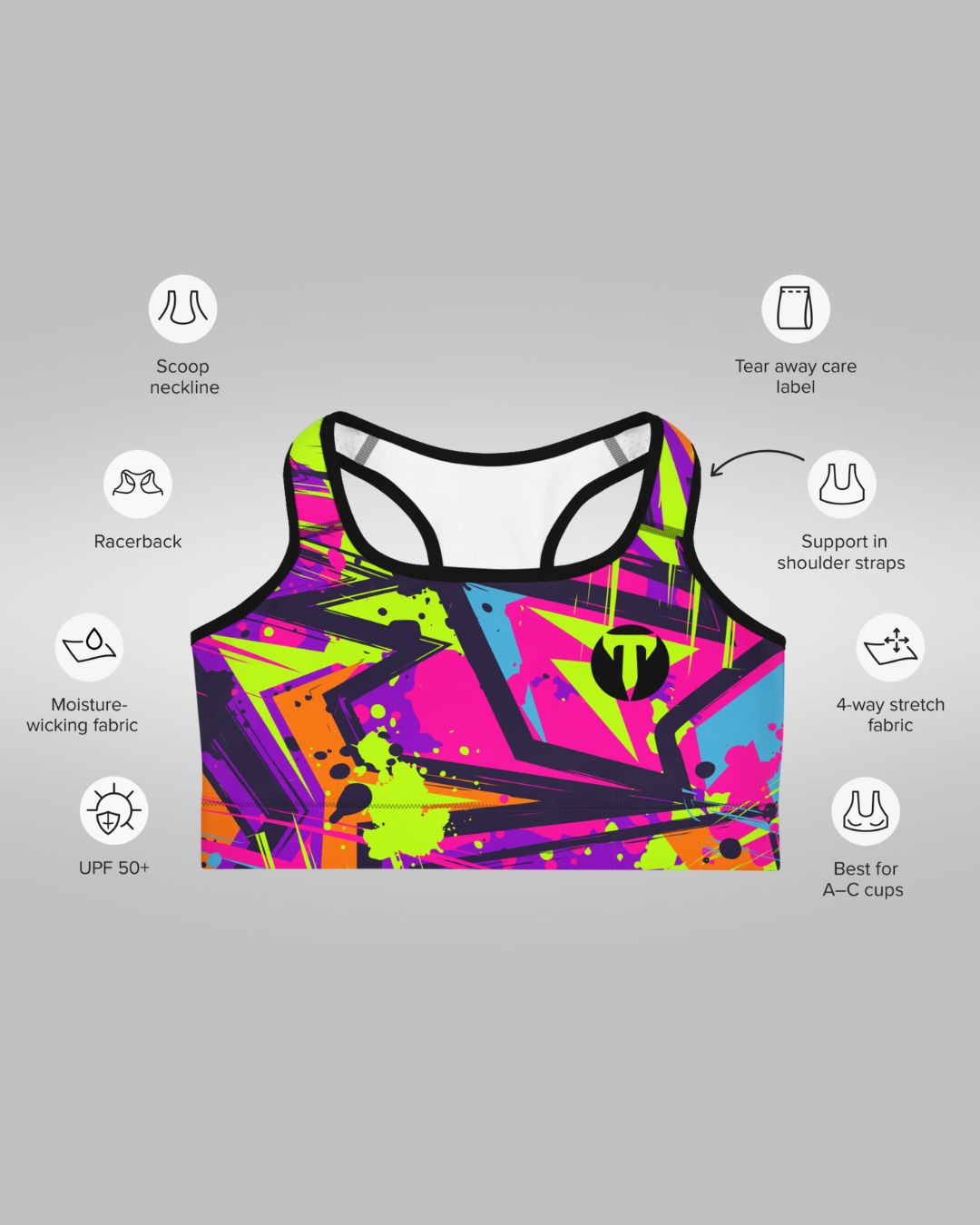 Introducing the Women’s Glide Sports Bra, part of the Zephyr Collection from Titan 6 Actual. This sports bra is designed for women who demand both support and performance. Made from a blend of 82% polyester and 18% spandex, it offers a comfortable, moisture-wicking fit with excellent stretch and recovery.
